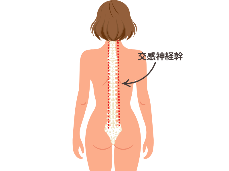 そのため、背中が緊張状態を作っていると、脳(脳幹、視床下部)がその情報を処理して、自律神経が乱れ、ホルモンの分泌を低下させます。